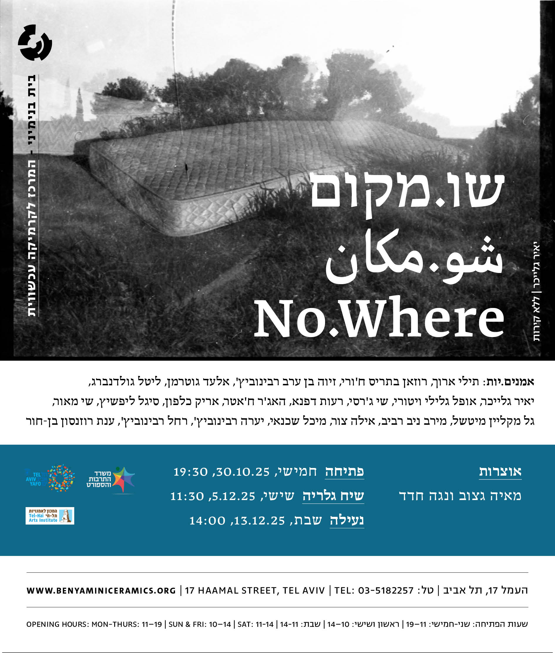 לפני שנתיים, עקב המלחמה, פונו המכללה האקדמית תל חי והמכון לאמנויות. רוב הסטודנטים והמרצים נאלצו לעזוב את מרכז היצירה שלהם לטובת בתים חלופיים. השנה חזרנו הביתה. זו לא הפעם הראשונה שתל חי ננטשת וקמה מחדש כמו בגלגול קארמתי, בתקווה תמידית שיעשה תיקון. מקום כה טעון בפאתוס וכאב הופך לטבור יצירתי, מתרוקן וקם מחדש. התערוכה שו.מקום מבקשת לתת קול לכאבי הפינוי והמלחמה ולהזכיר כי דמיון ויצירה הם הבסיס לחיים. בתערוכה, מרצי.ות ובוגרי.ות המכון לאמנויות תל חי מעלות.ים שאלות על המושג מקום – מקום אישי, עמדה מול מקום, מקום שהוא ארץ ומקום שהוא חוסר מקום.